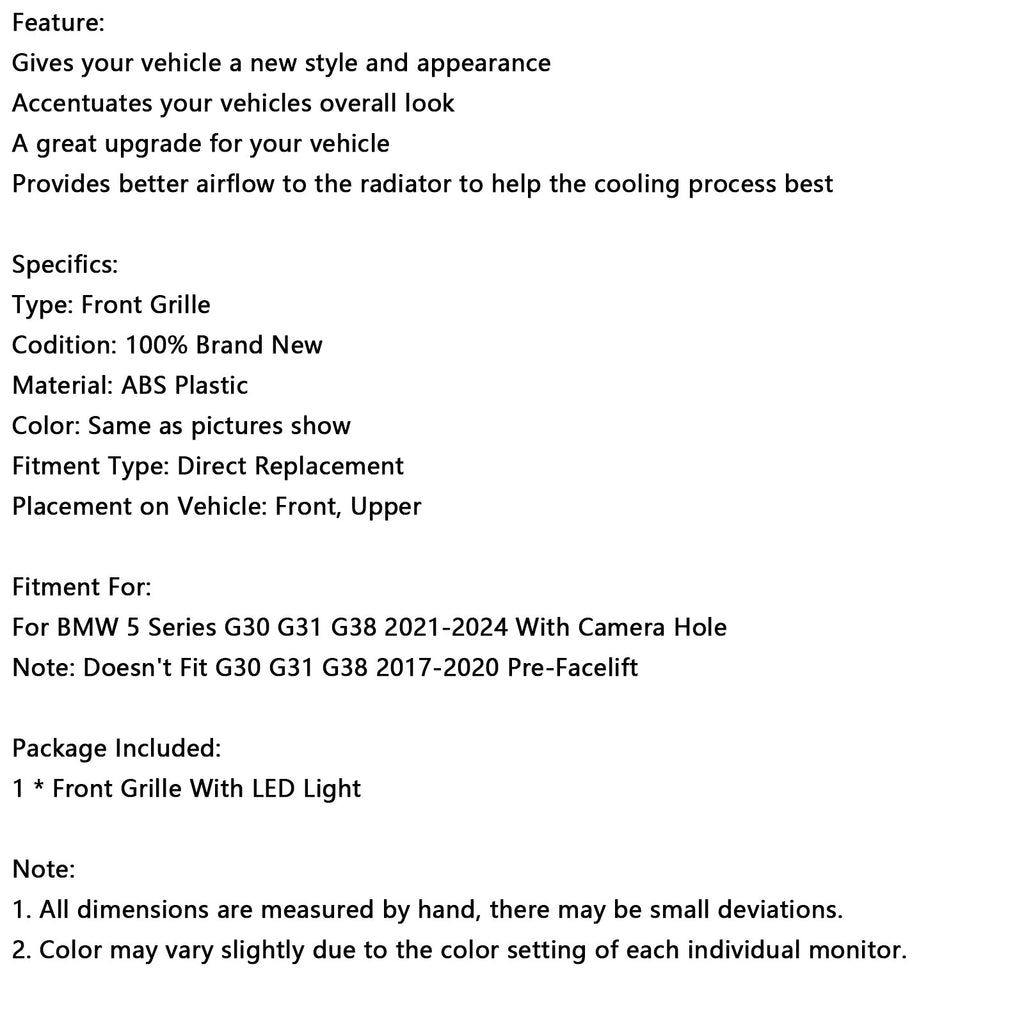 Note: Doesn't Fit G30 G31 G38 2017-2020 Pre-Facelift