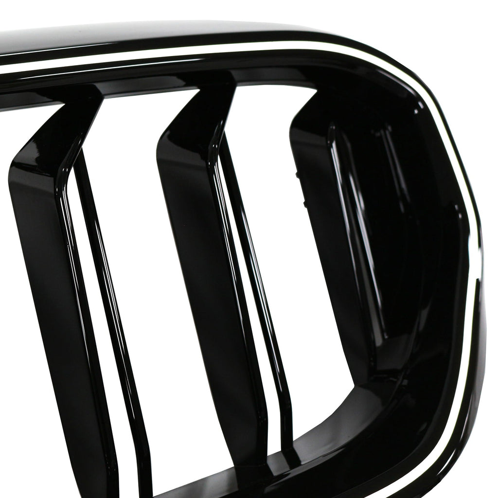 Double Slat Front Kidney Grille Fit BMW 5 Series G30 G38 2021-2024 Gloss Black