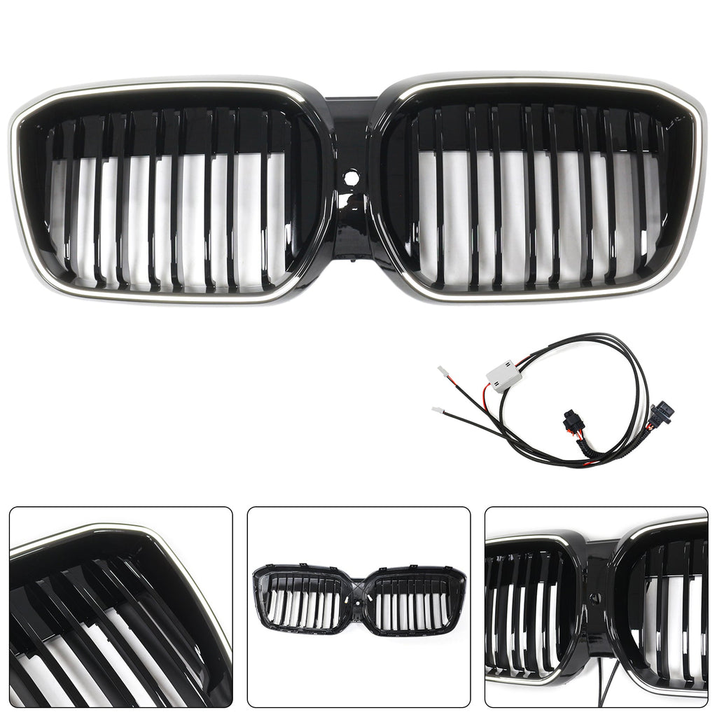 Double Slat Gloss Black Front Kidney Grill Grille Fit BMW IX3 G08 LCI 2022-2024