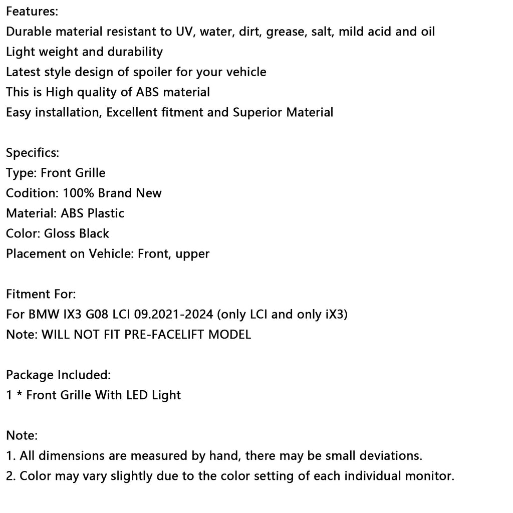For BMW IX3 G08 LCI 09.2021-2024 (only LCI and only iX3)