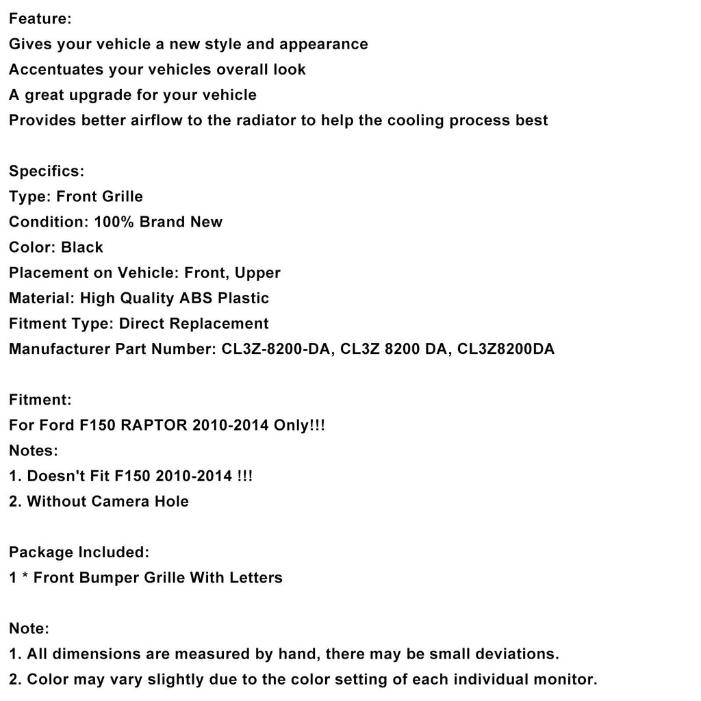 Front Bumper Grille CL3Z8200DA Fit for Ford F150 2010-2014 Raptor W/O Camera Hole