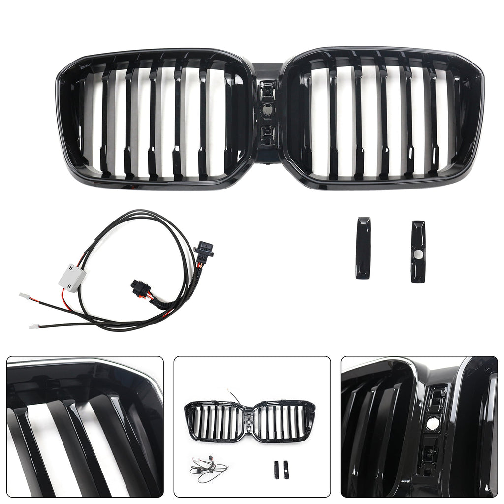 Glossy Black Front Bumper Kidney Grille Fit BMW X3 G01 X4 G02 2022-2025