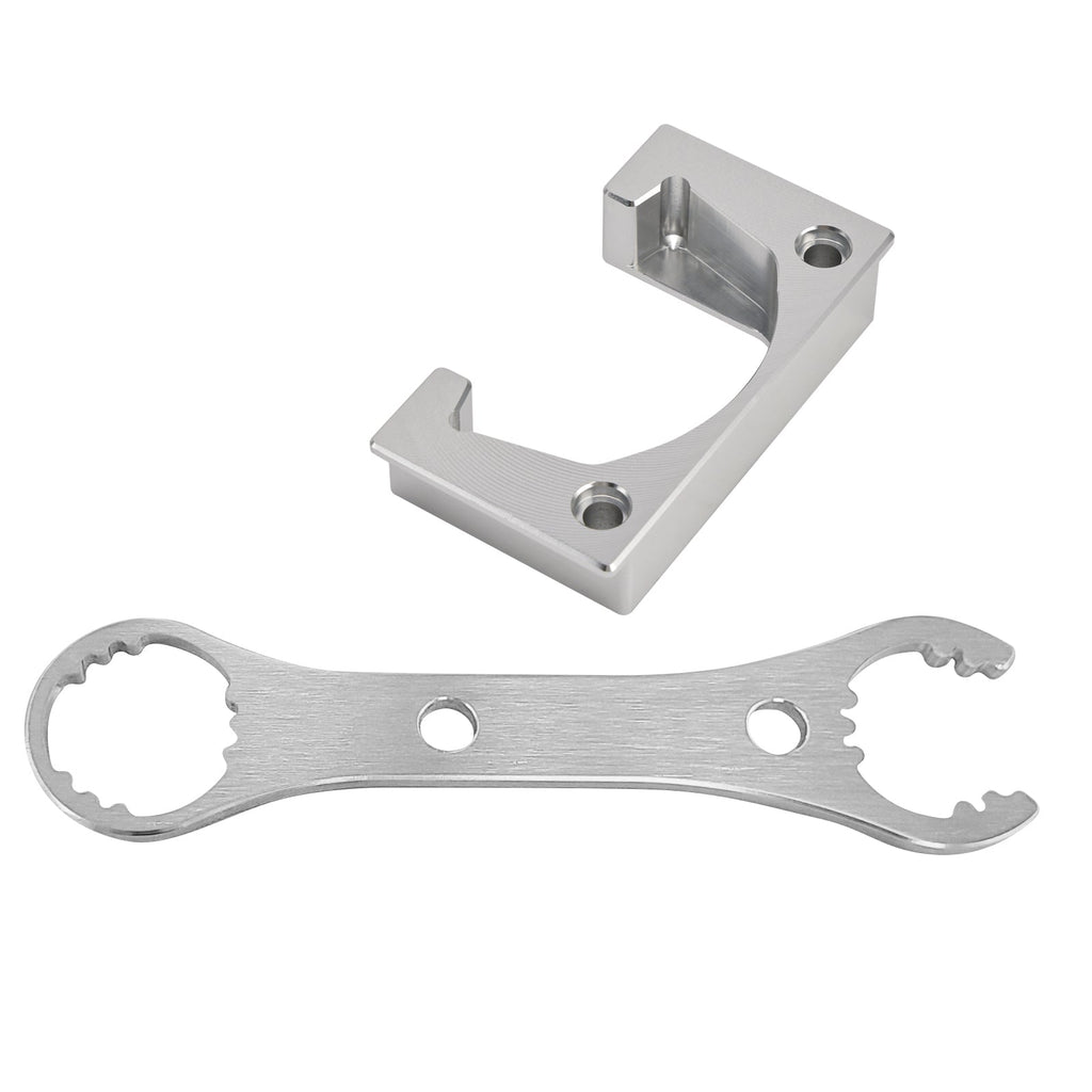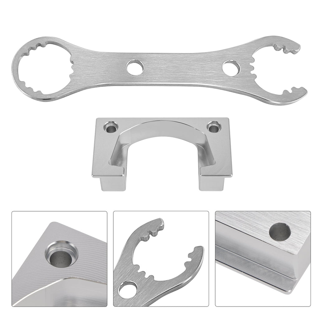 The second tool is a Spanner wrench that fits the Cane Creek Double Barrel air, and the Inline air rear shock seal head. It is CNC machined out of 6061 aluminum for a presision fit. It is 9.0" long. This has 2 different sizes one for the seal head and the other for the top of the shock.