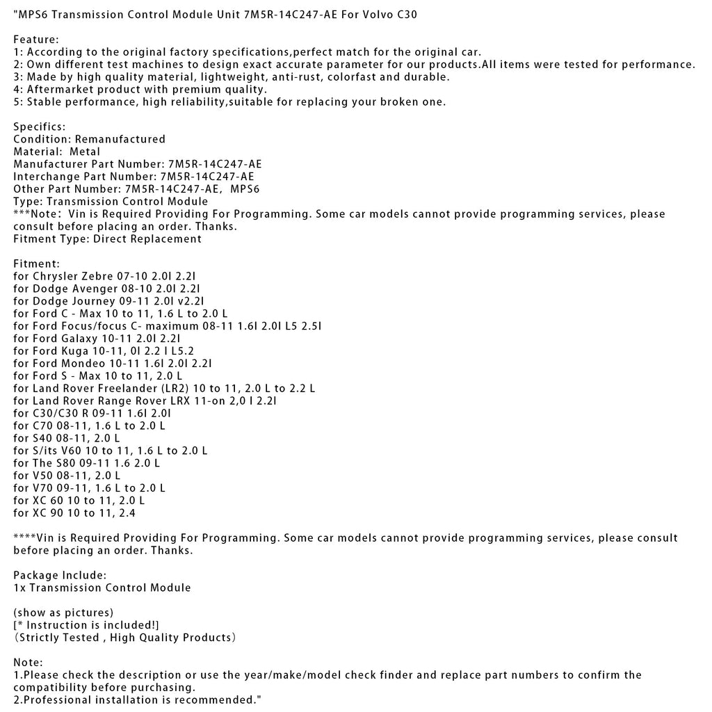 MPS6 Transmission Control Module Unit 7M5R-14C247-AE For Volvo C30