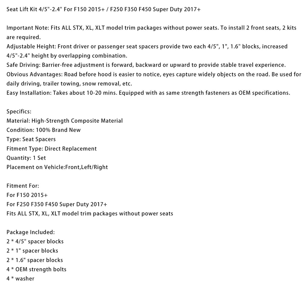 Seat Lift Kit 4/5"-2.4" For F150 2015+ / F250 F350 F450 Super Duty 2017+