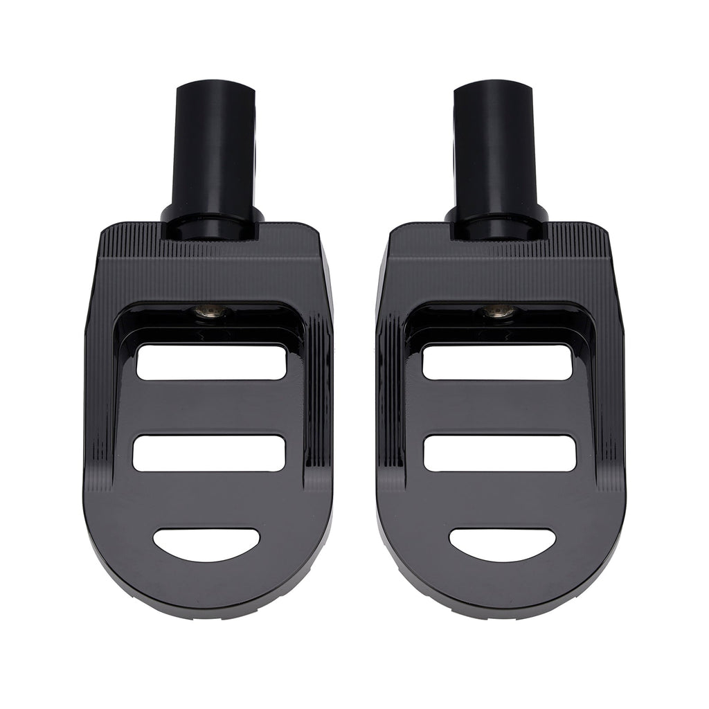 Universal Highway Rest Footrest Pedals can be mounted to 1 inch (25 mm), 1.06 inches (27 mm-28 mm) or 1.25 inches (31.75 mm) bars, and are equipped with 3 rubber washers to generate sufficient clamping force to prevent the footrests from rotating on the bars. (Rubber washers are required when mounting on 1 inch (25 mm), 1.06 inches (27 mm-28 mm) bars). The footrests can be placed at any angle to customize the fit of your bike and improve your comfort.