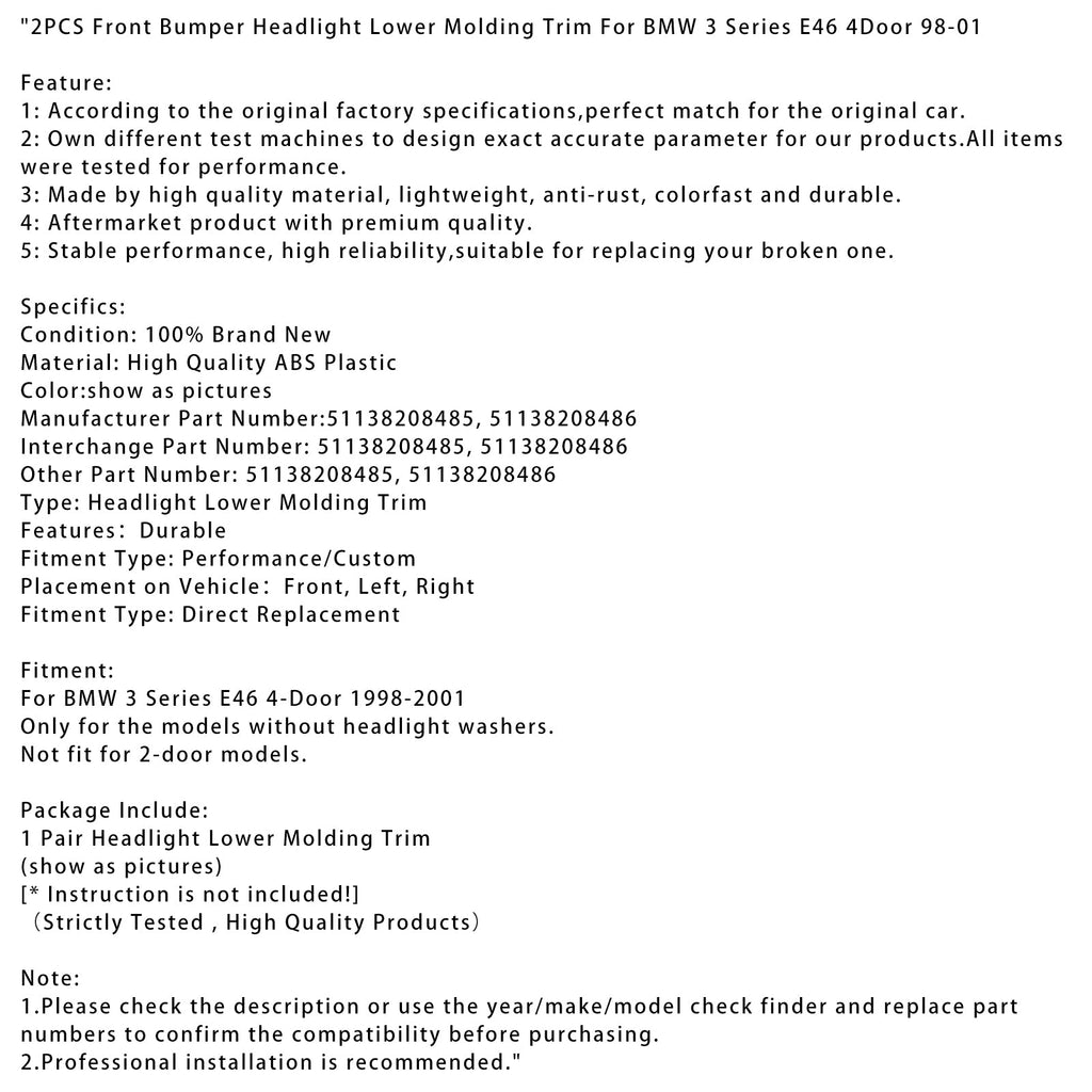 2PCS Front Bumper Headlight Lower Molding Trim For BMW 3 Series E46 4Door 98-01
