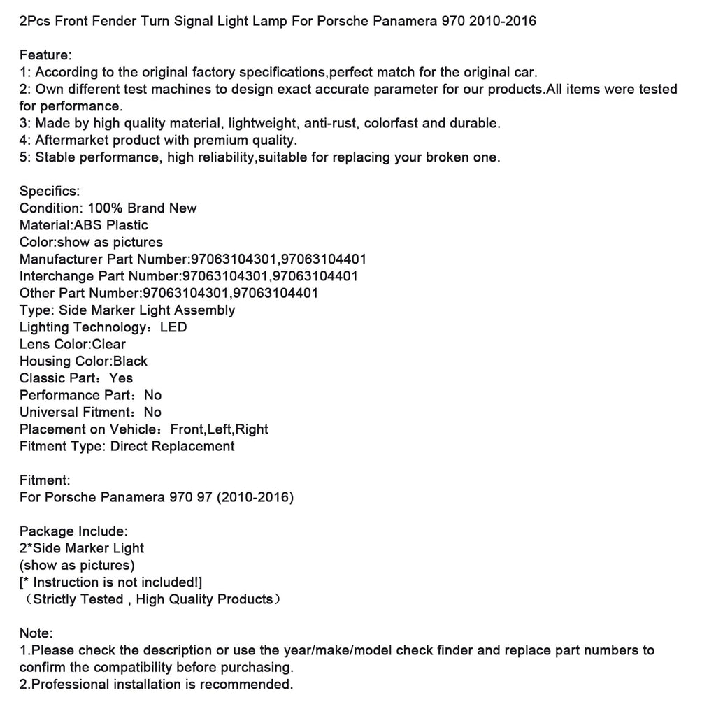 2010-2016 Porsche Panamera 970 2Pcs Front Fender Turn Signal Light Lamp 97063104301 97063104401