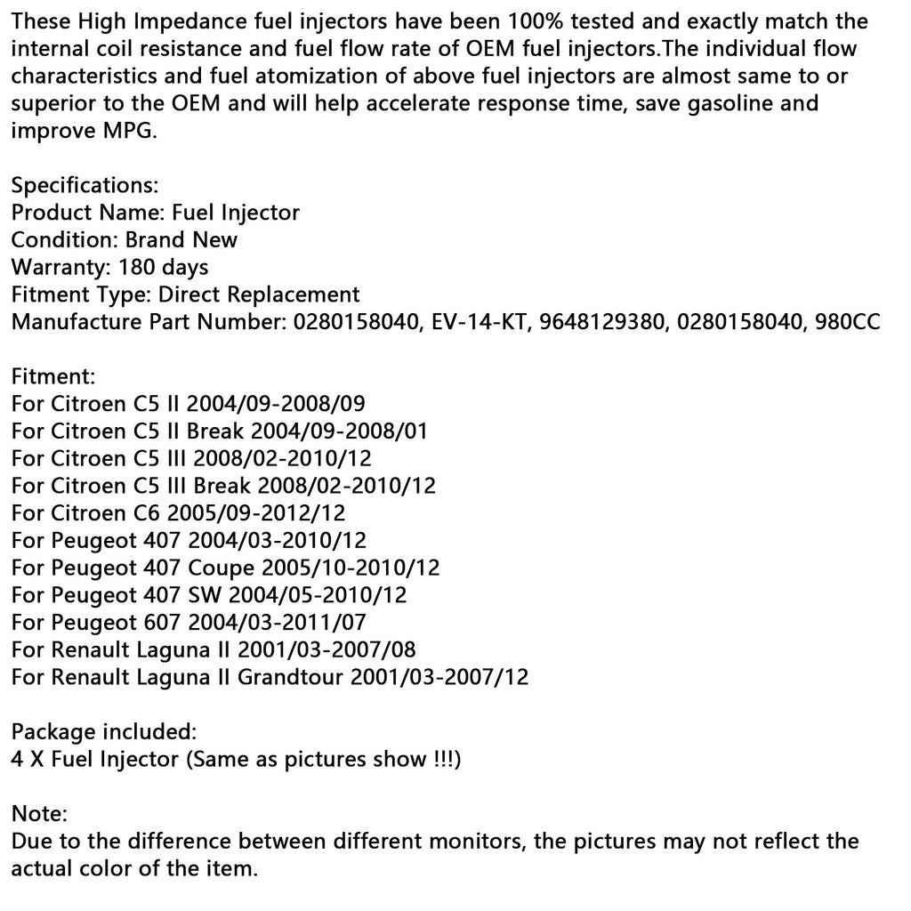4PCS Fuel Injector 0280158040 980CC Fit Citroen Fit Peugeot Fit Renault