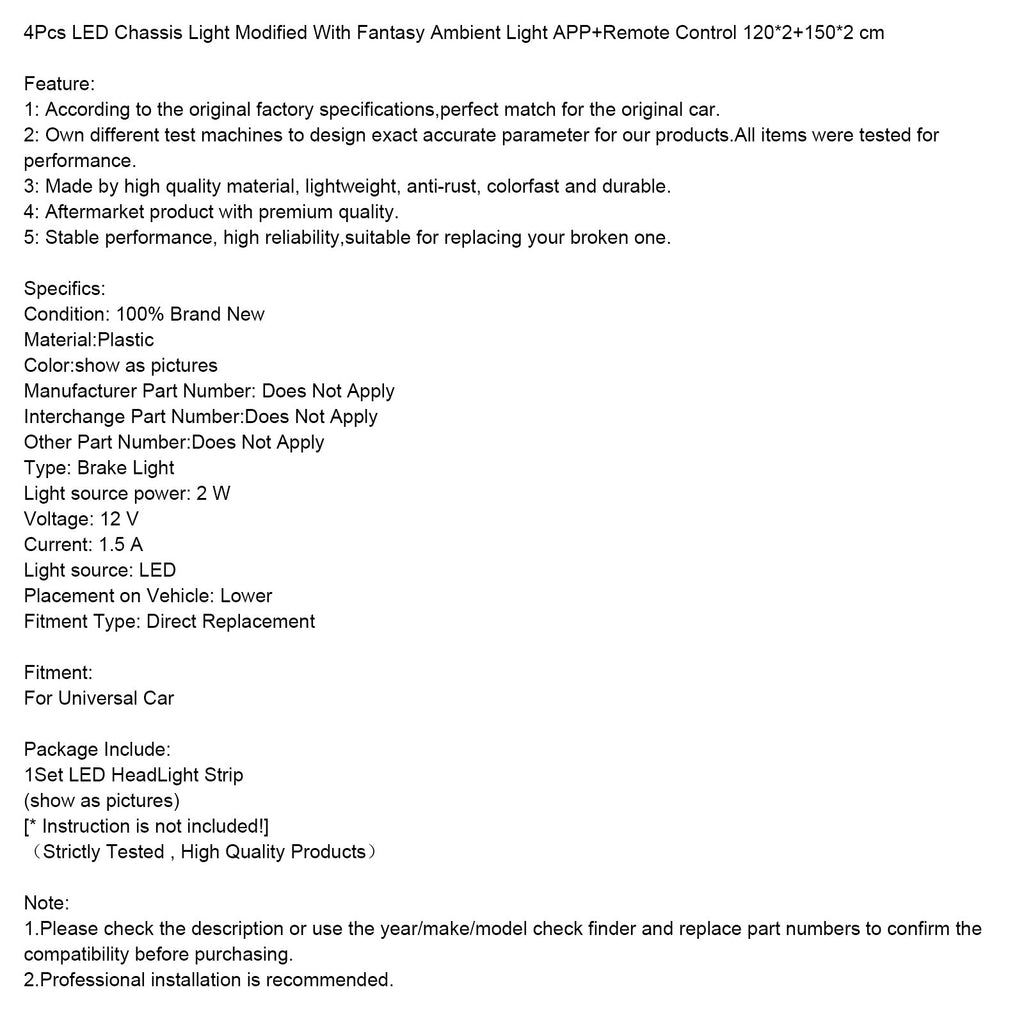 4Pcs LED Chassis Light Modified With Fantasy Ambient Light APP+Remote Control 120*2+150*2 cm