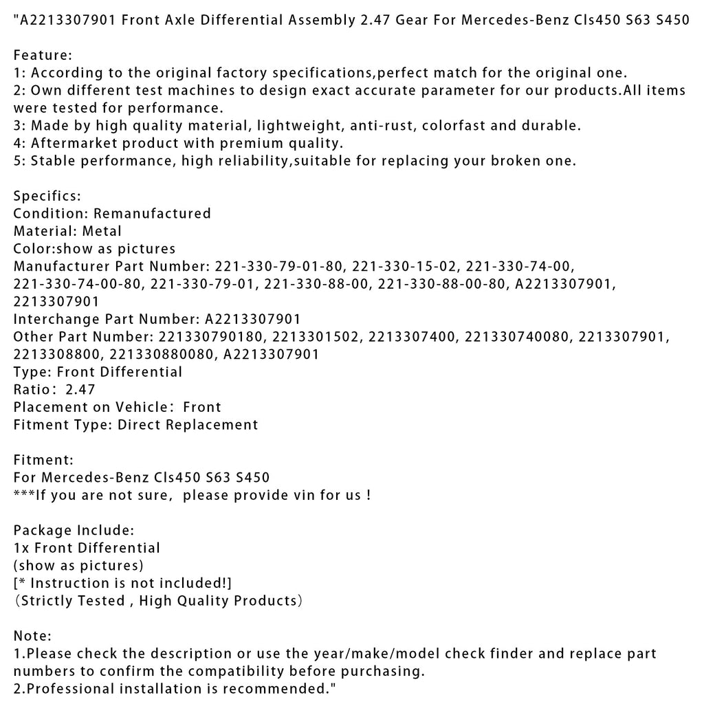 Mercedes-Benz Cls450 S63 S450 Front Axle Differential Assembly 2.47 Gear A2213307901