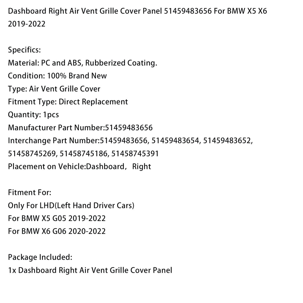 Dashboard Right Air Vent Grille Cover Panel 51459483656 Fit For BMW X5 X6 2019-2022