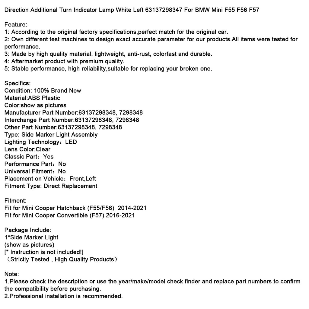 Direction Additional Turn Indicator Lamp White Left 63137298347 For BMW Mini F55 F56 F57