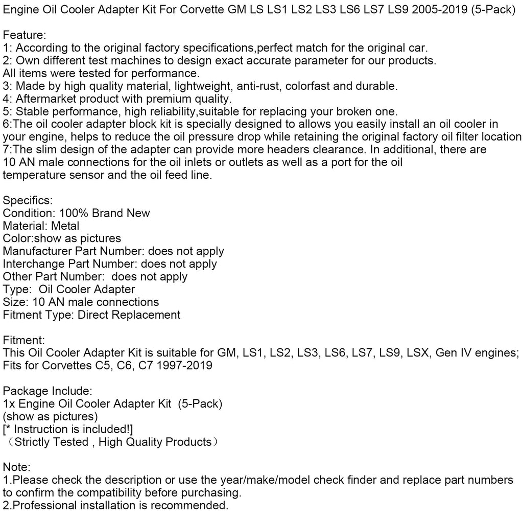 Engine Oil Cooler Adapter Kit For Corvette GM LS LS1 LS2 LS3 LS6 LS7 LS9 2005-2019 (5-Pack)