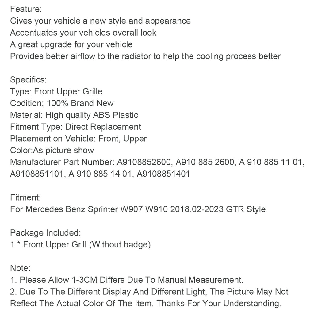 Front Bumper Grille Grill fit for Mercedes Sprinter W907 W910 2018-2023 GTR Style (Without badge)