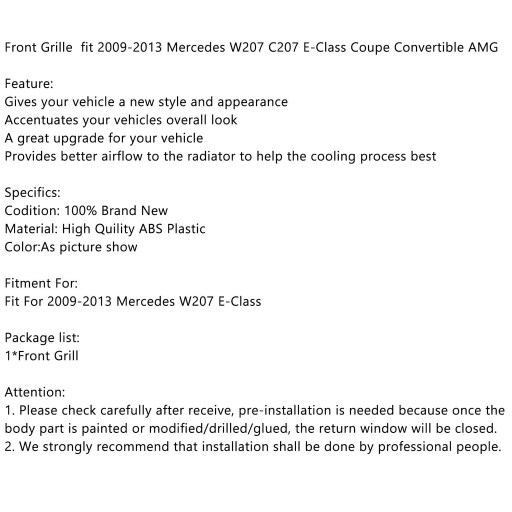 Front Grille fit 2009-2013 Mercedes W207 C207 E-Class Coupe Convertible AMG Generic