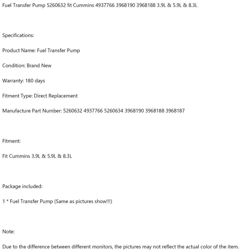 Fit Cummins 3.9L & 5.9L & 8.3L