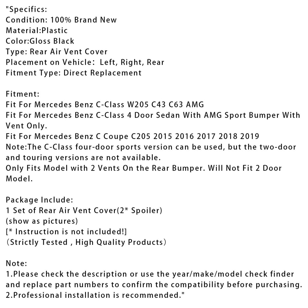 Gloss Black Rear Air Vent Cover For Benz C Class W205 C43 C63 2014-2019