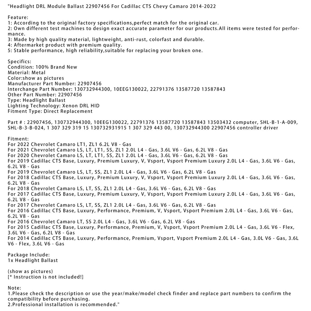 Headlight DRL Module Ballast 22907456 For Cadillac CTS Chevy Camaro 2014-2022