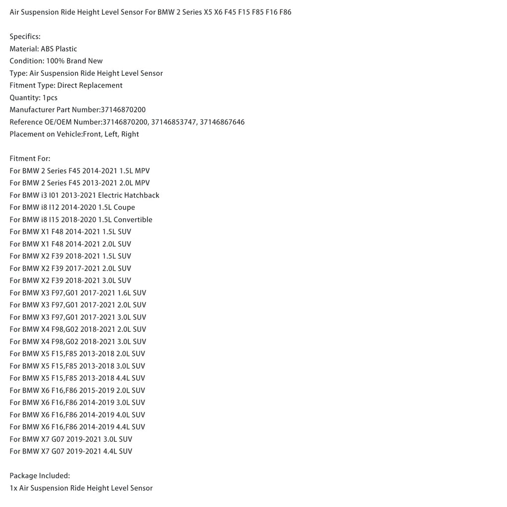 Air Suspension Ride Height Level Sensor For BMW 2 Series X5 X6 F45 F15 F85 F16 F86