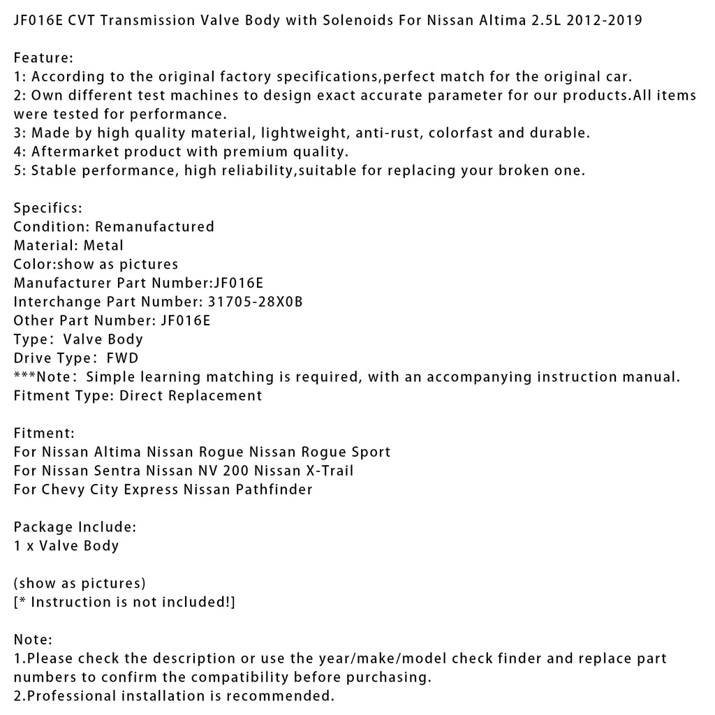 JF016E CVT Transmission Valve Body with Solenoids For Nissan Altima 2.5L 12-2019