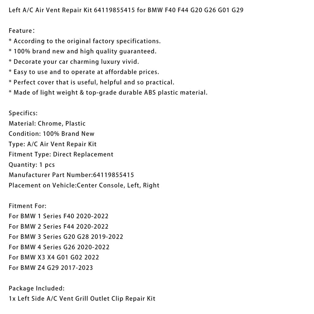 Left A/C Air Vent Repair Kit 64119855415 for BMW F40 F44 G20 G26 G01 G29