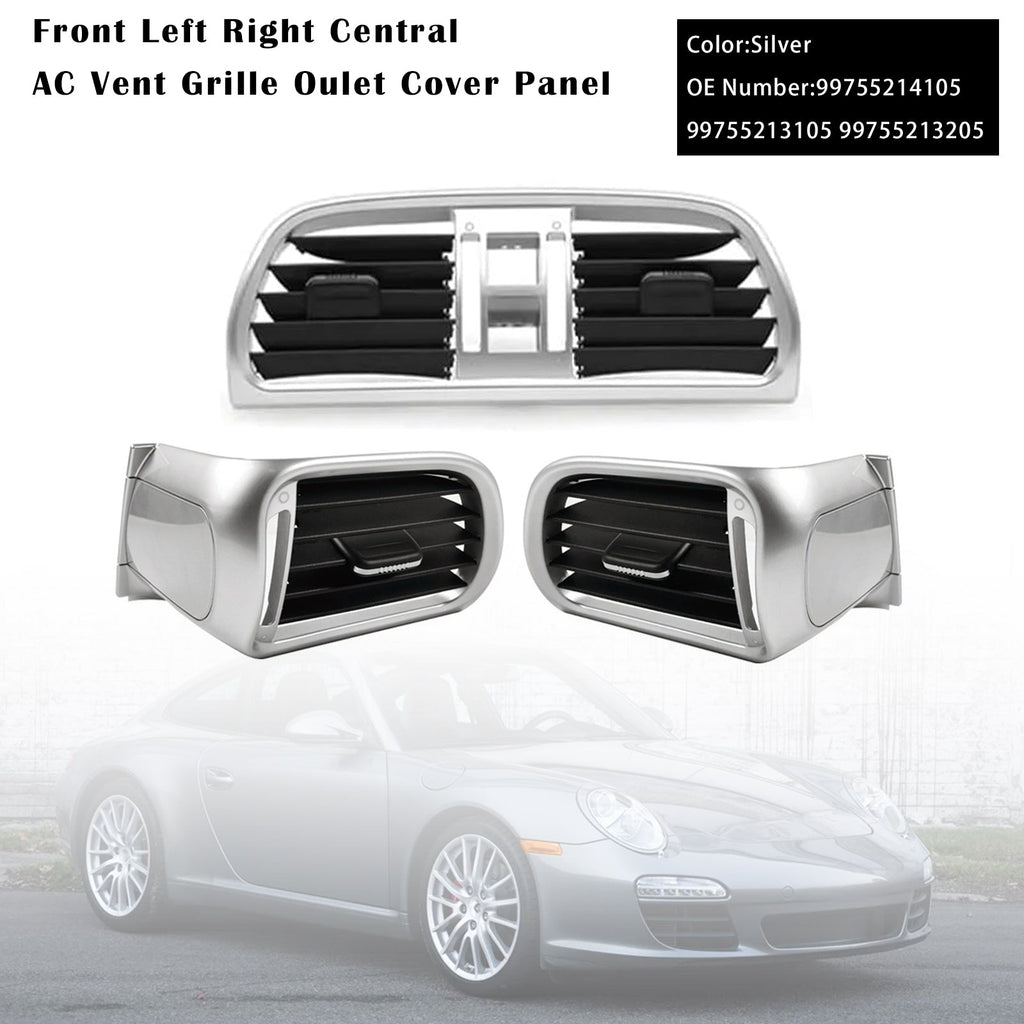 Front Left Right Central AC Vent Grille Oulet Cover Panel Silver Fit For Porsche 911 Carrera Targa GT2 GT3 997 2004-2012