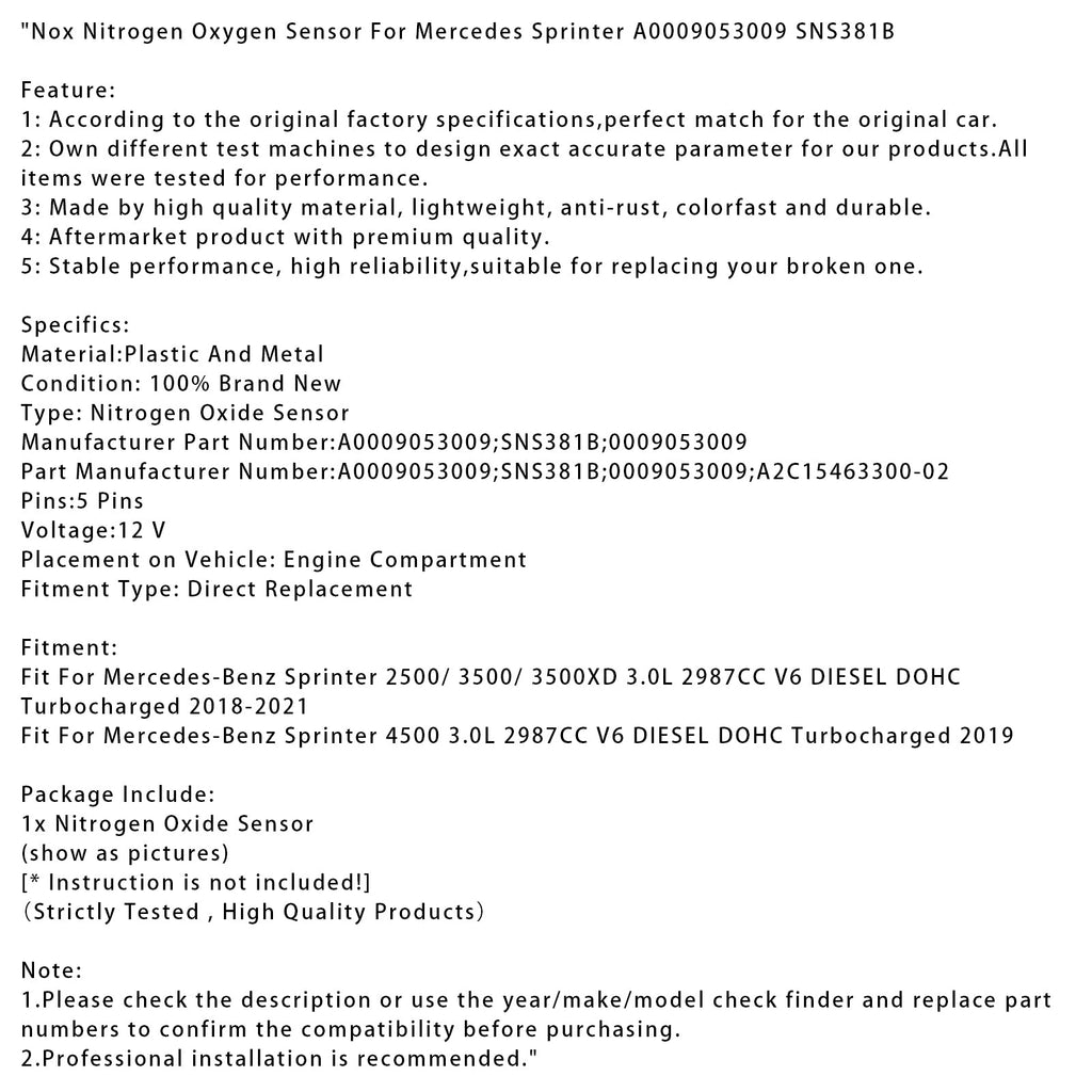 2018-2021 Mercedes-Benz Sprinter 2500/ 3500/ 3500XD 3.0L 2987CC V6 DIESEL DOHC Turbocharged Nox Nitrogen Oxygen Sensor A0009053009 SNS381B