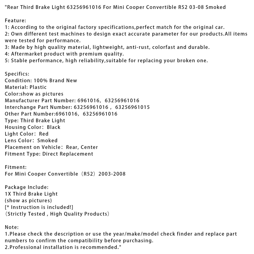 Rear Third Brake Light 63256961016 For Mini Cooper Convertible R52 2003-2008 Smoked