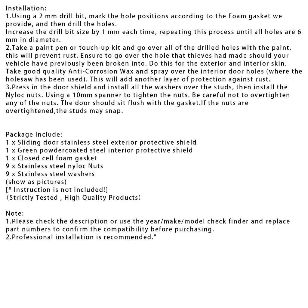 【Dual-Layer Steel Defense】: Combines a 2.5mm stainless steel external shield with a 2.5mm powder-coated steel internal shield. This adds 5mm of hardened protection over the vulnerable area�Dfar stronger than the van's original ~1mm door skin.
