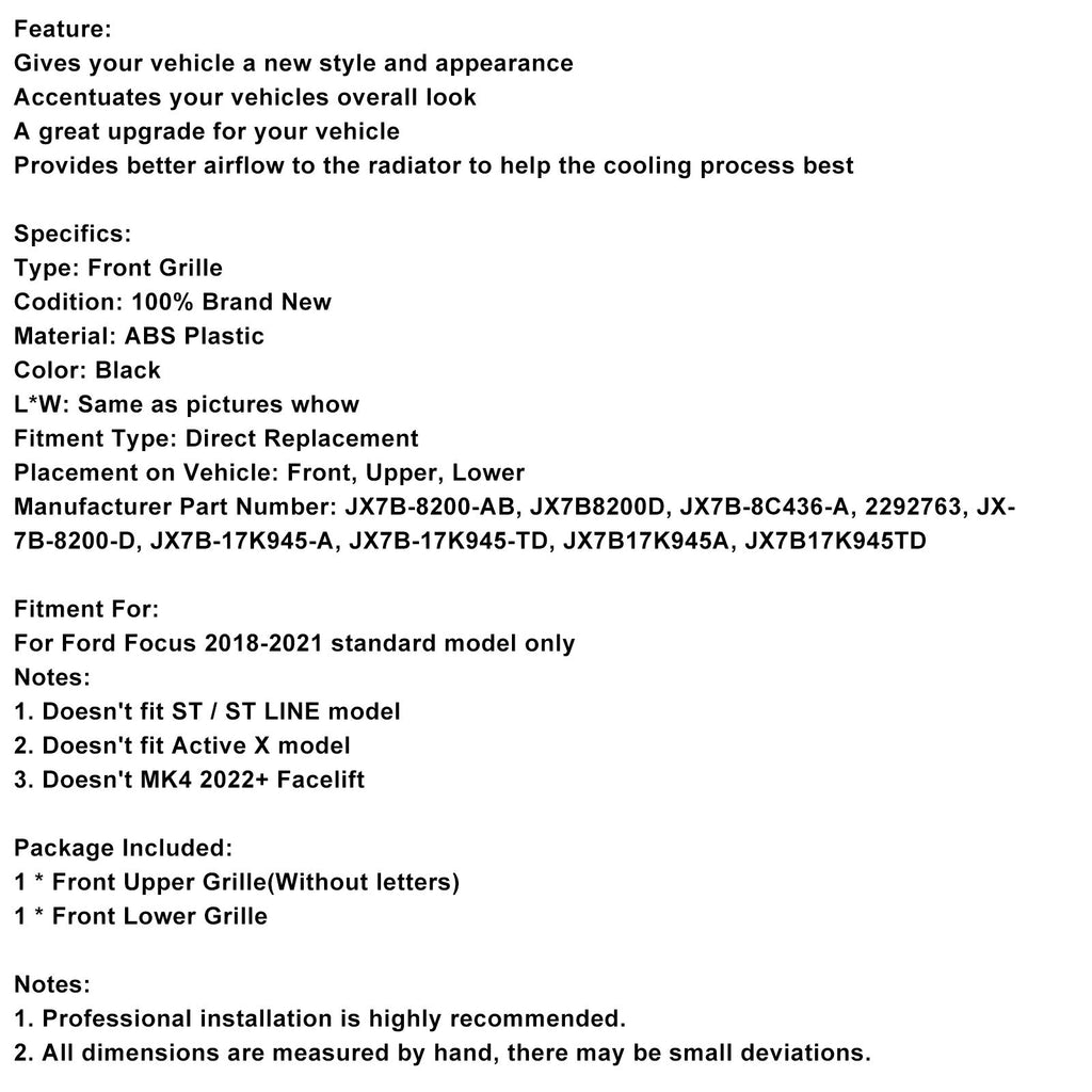 For Ford Focus 2018-2021 standard model only