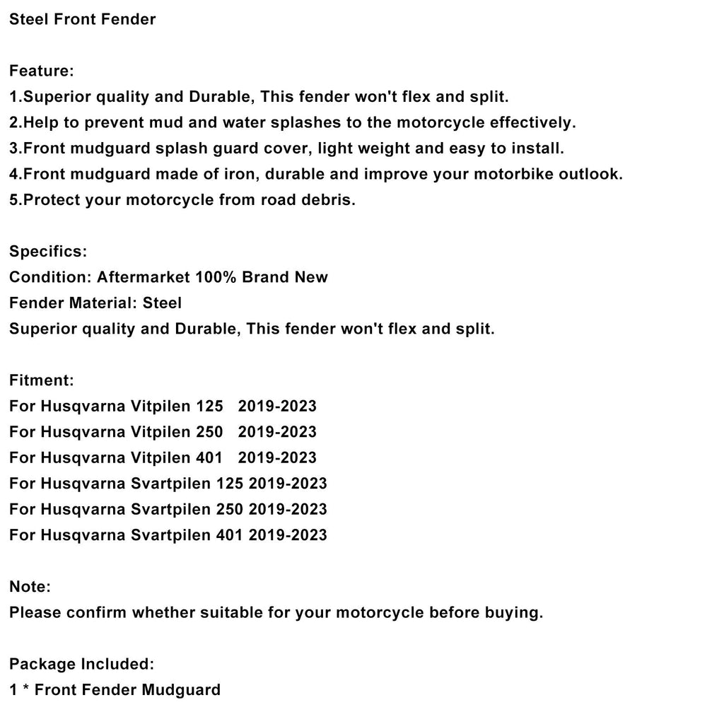 2019-2023 Husqvarna Vitpilen 125 250 401 Svartpilen Steel Front Fender
