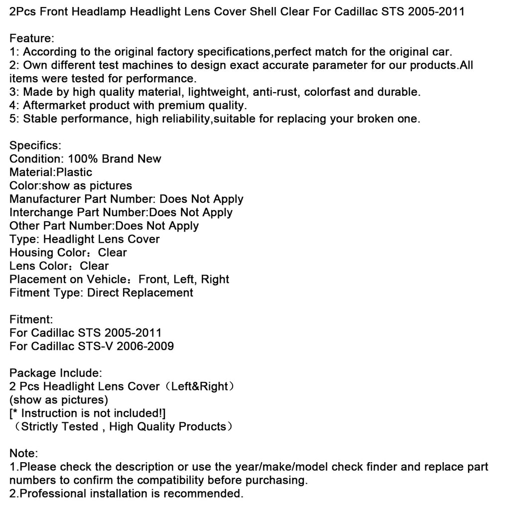 2Pcs Front Headlamp Headlight Lens Cover Shell Clear For Cadillac STS 2005-2011