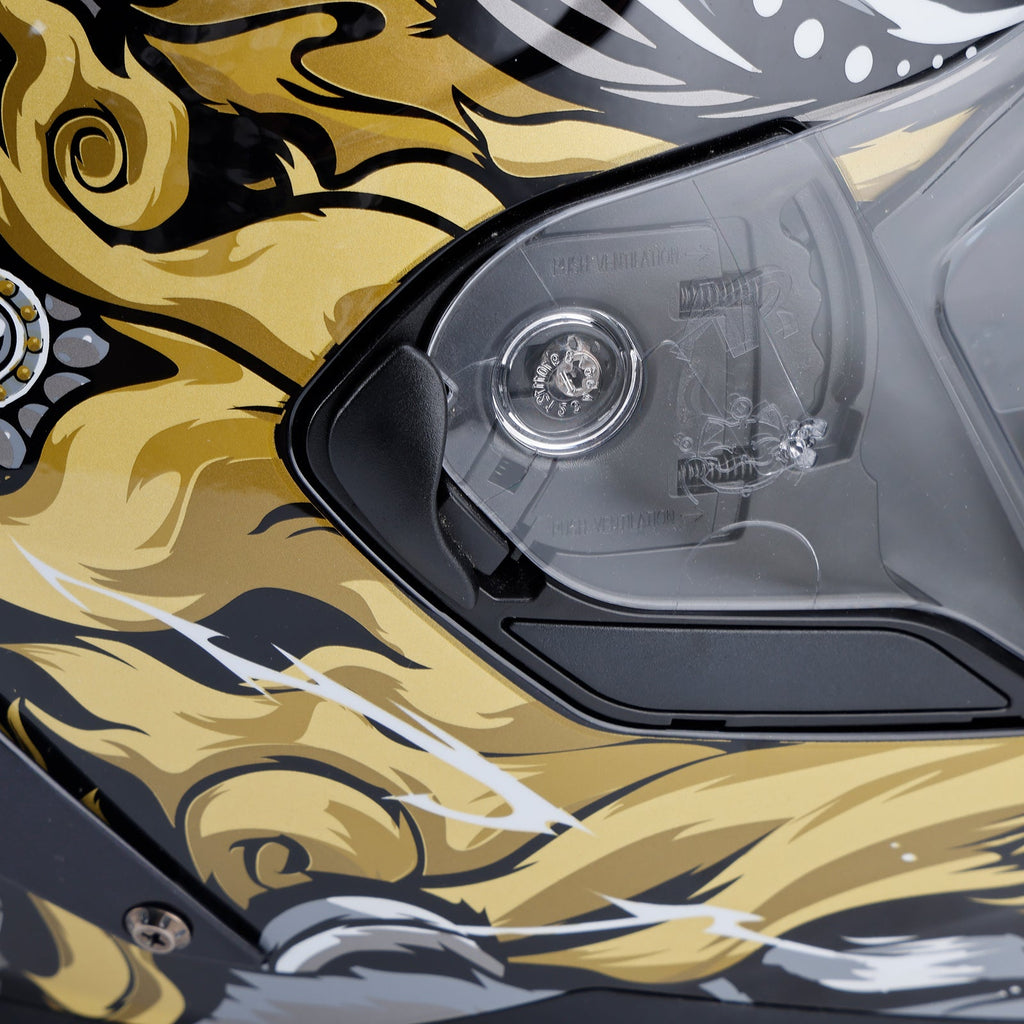 Comes with clear and tinted visor,The helmet features a scratch-resistant visor that provides a clear view in all weather conditions.The wide field of vision ensures you can see more of your surroundings,improving safety and awareness on the road.The quick-release mechanism allows for easy visor changes.