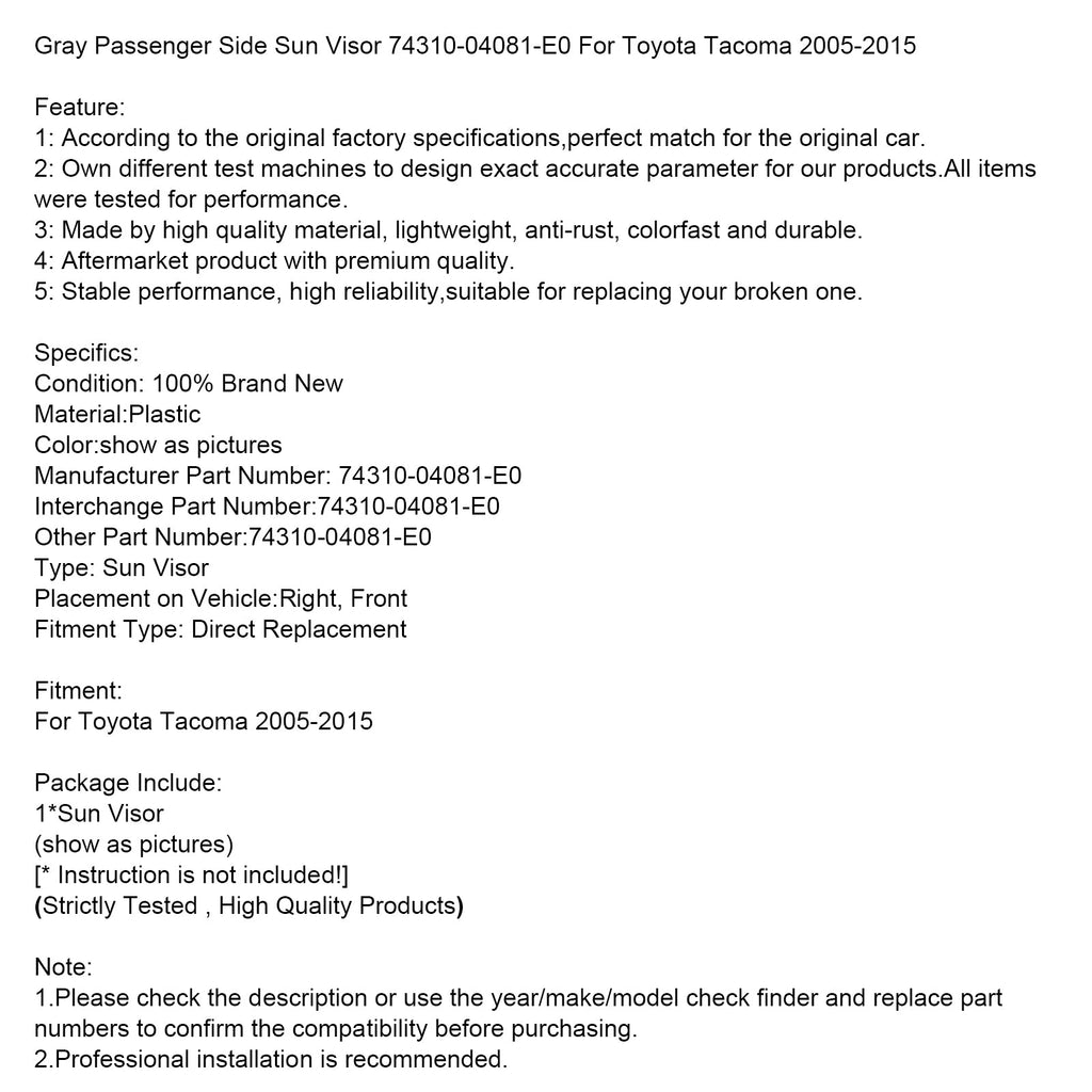 Gray Passenger Side Sun Visor 964013TA2A For Nissan Altima 2013-2018