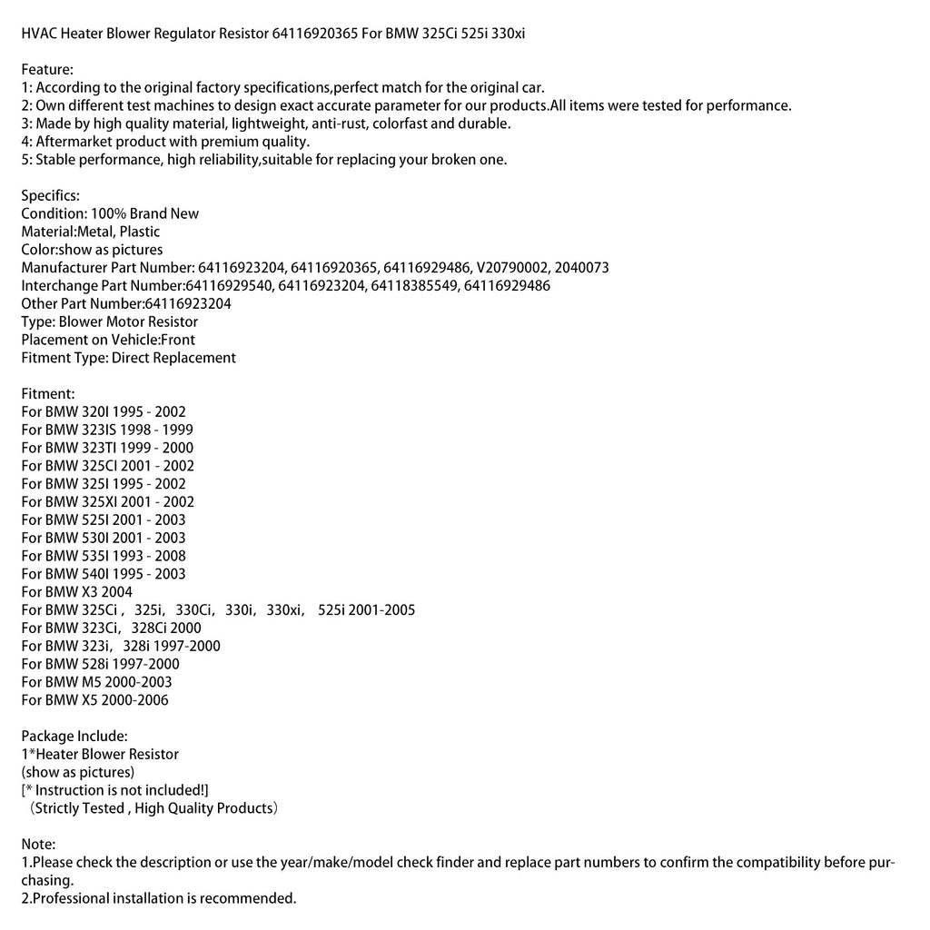 HVAC Heater Blower Regulator Resistor 64116920365 For BMW 325Ci 525i 330xi