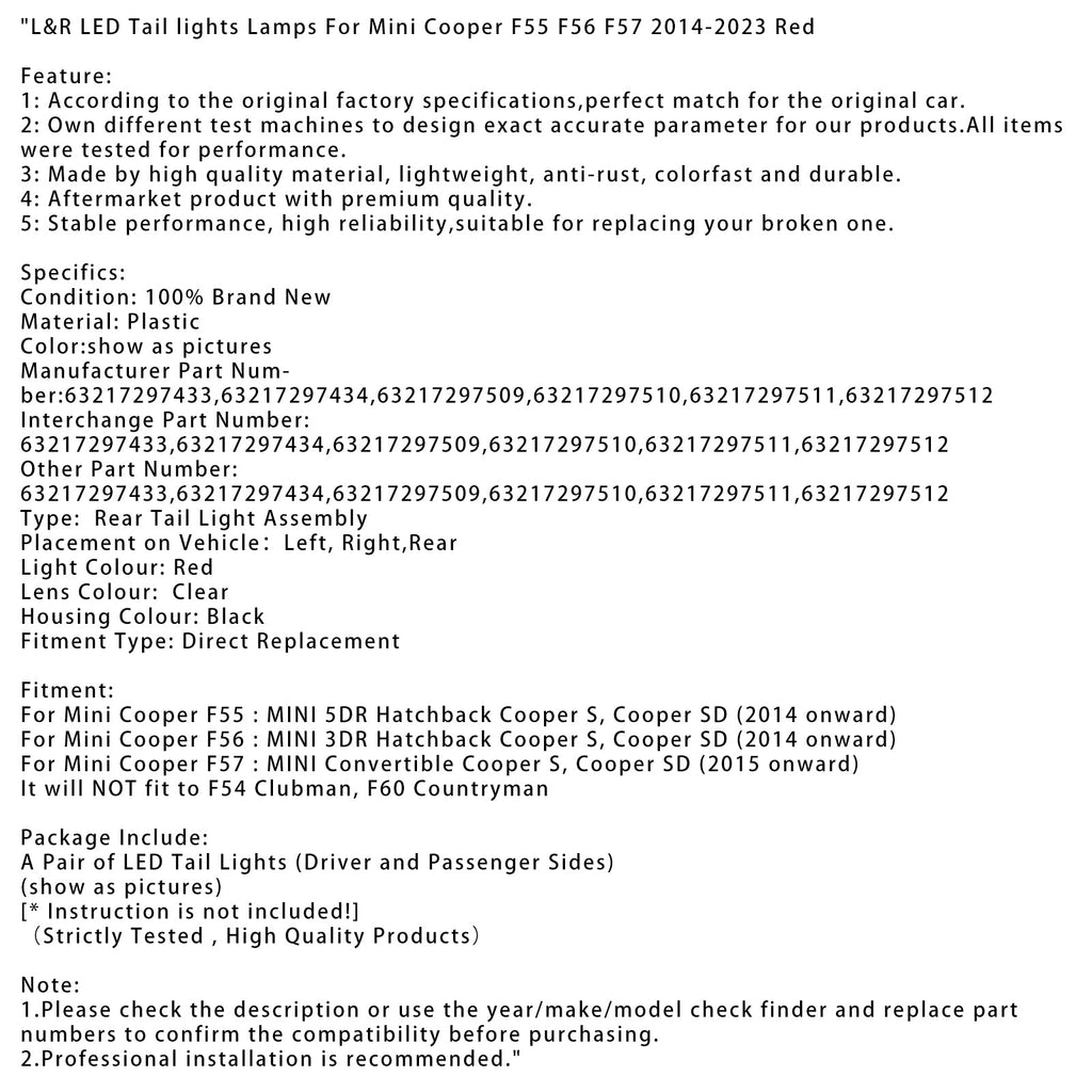 L&R LED Tail lights Lamps For Mini Cooper F55 F56 F57 2014-2023 Red