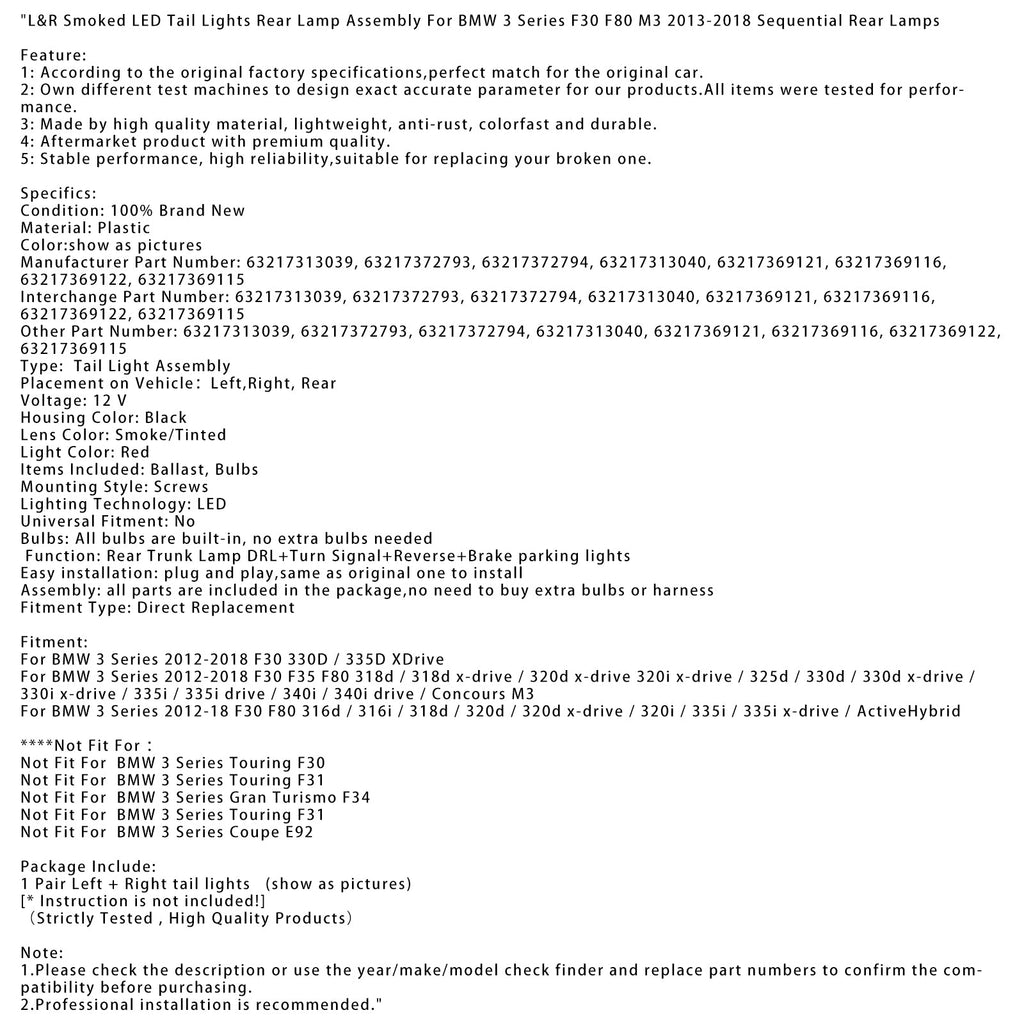 L&R Smoked LED Tail Lights Rear Lamp Assembly For BMW 3 Series F30 F80 M3 2013-2018 Sequential Rear Lamps