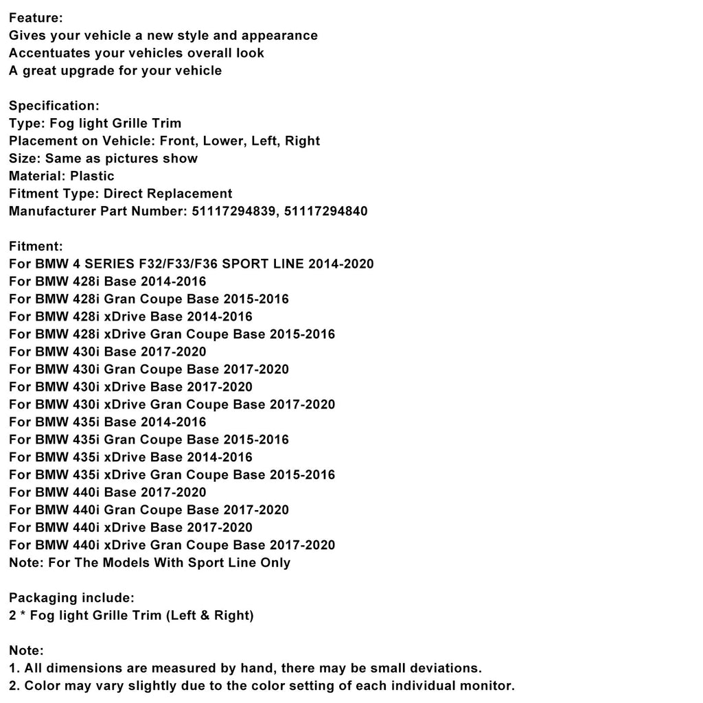 Left & Right Fog Light Bezel Grille Front Bumper Trim Fit for BMW 428i F32 F33 F36
