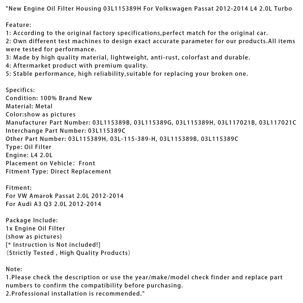 New Engine Oil Filter Housing 03L115389H Fit For Volkswagen Passat 2012-2014 L4 2.0L Turbo