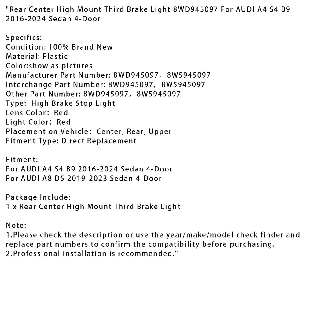 Rear Center High Mount Third Brake Light 8WD945097 For AUDI A4 S4 B9 2016-2024 Sedan 4-Door