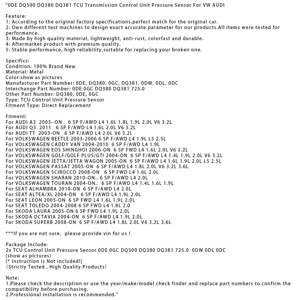 2x TCU Control Unit Pressure Sensor 0DE 0GC DQ500 DQ380 DQ381 725.0 0DW 0DL 0DC