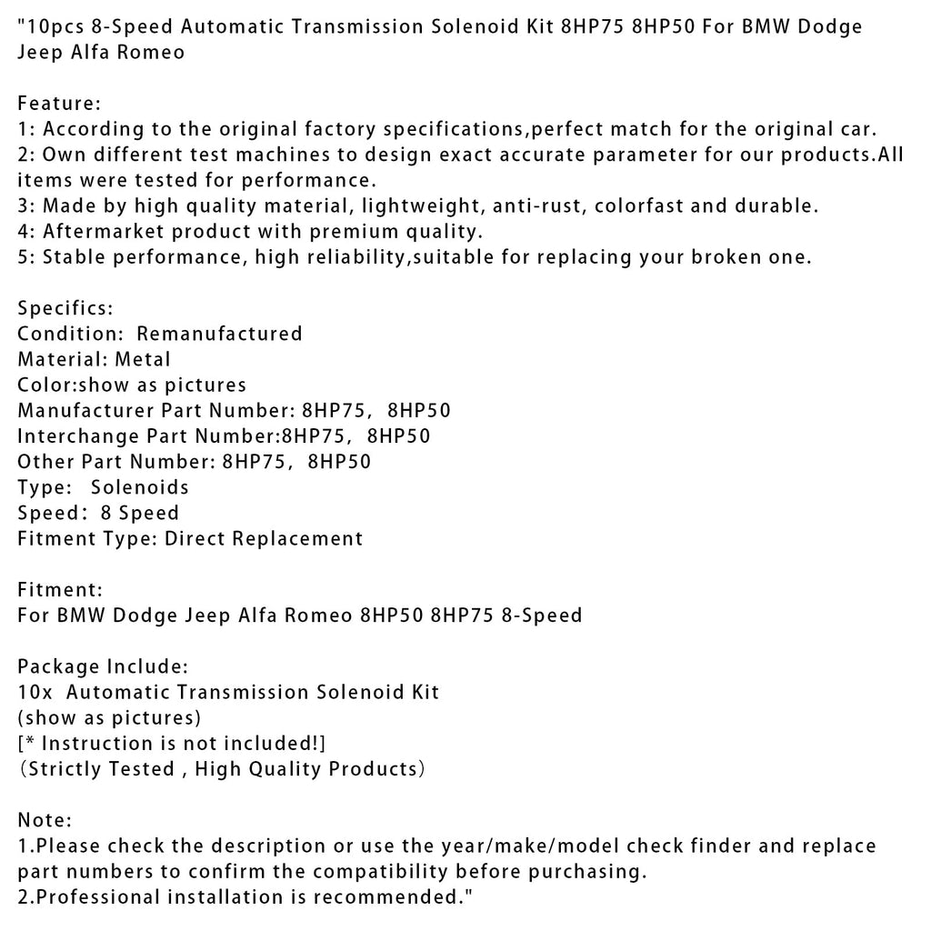 10pcs 8-Speed Automatic Transmission Solenoid Kit 8HP75 8HP50 For BMW For Dodge For Jeep For Alfa??For Romeo