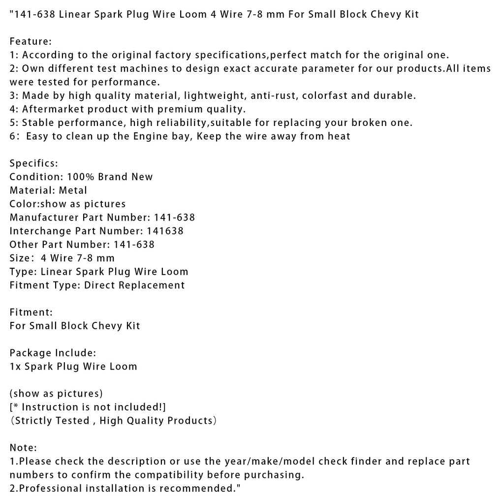 141-638 Linear Spark Plug Wire Loom 4 Wire 7-8 mm For Small Block Chevy Kit