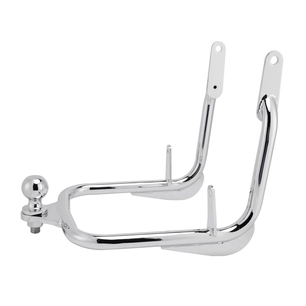 Bumper trailer hitch mounts to the inside frame/fender struts, and the lower brackets anchor to the saddlebag supports