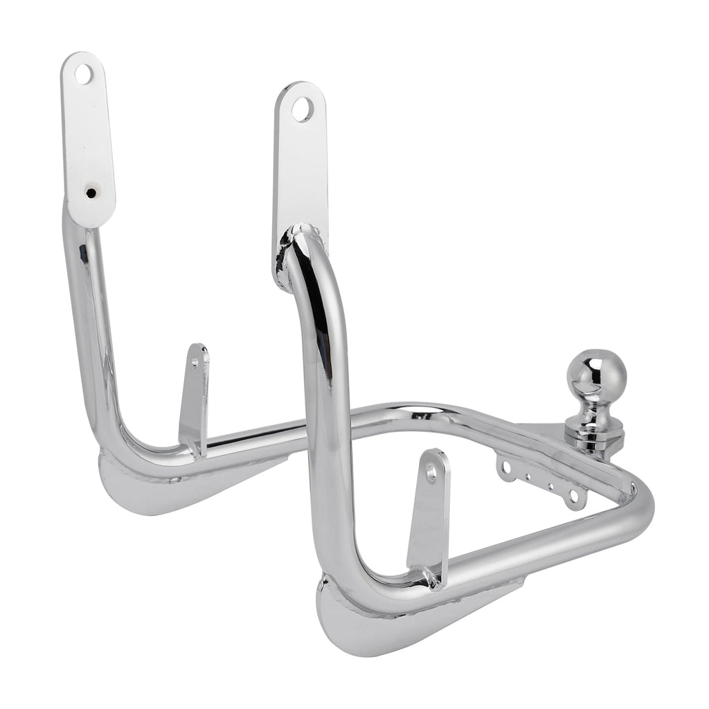 Bumper trailer hitch mounts to the inside frame/fender struts, and the lower brackets anchor to the saddlebag supports