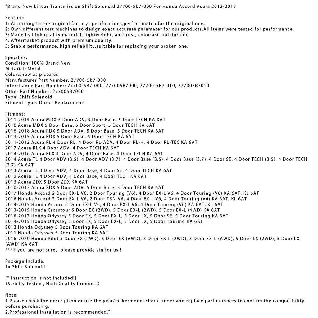 Brand New Linear Transmission Shift Solenoid 27700-5b7-000 For Honda Accord Acura 2012-2019