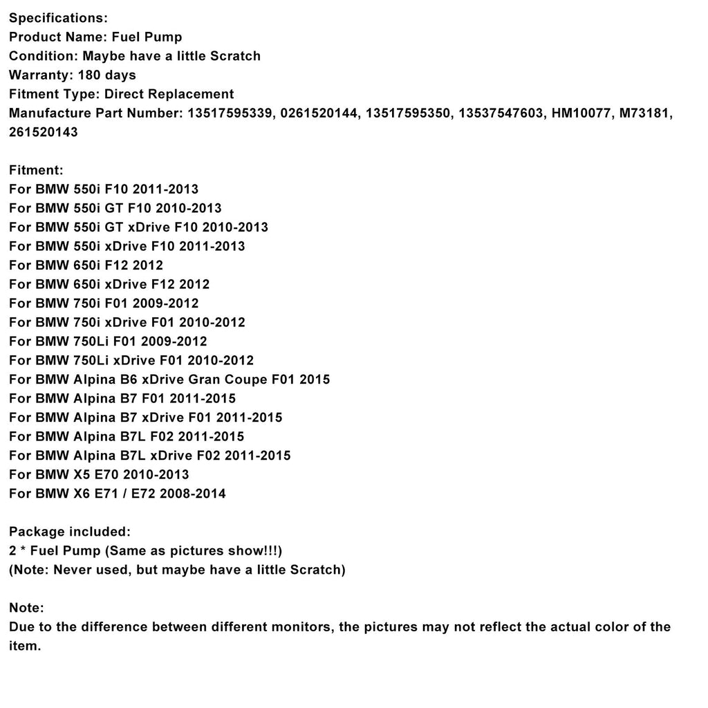 2PCS High Pressure Fuel Pump 13517595339 Fit for BMW F01 F10 E70 X5 E70 V8 4.4L