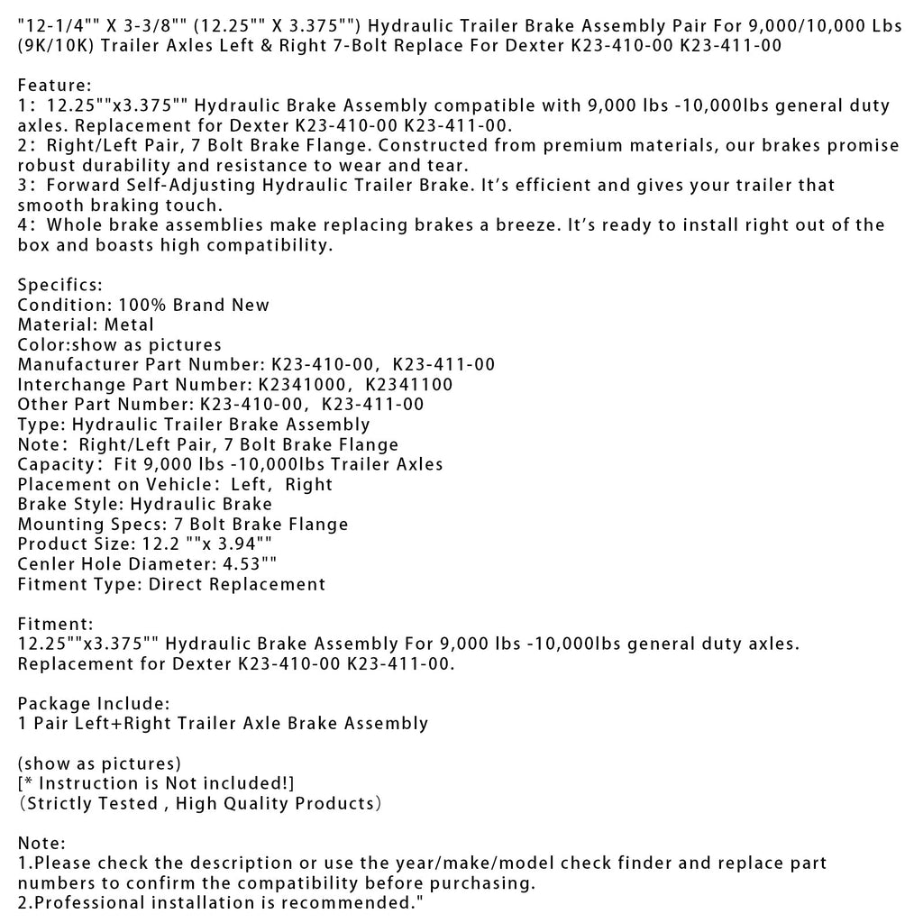 12-1/4" X 3-3/8" (12.25" X 3.375") Hydraulic Trailer Brake Assembly Pair For 9,000/10,000 Lbs (9K/10K) Trailer Axles Left & Right 7-Bolt Replace For Dexter K23-410-00 K23-411-00