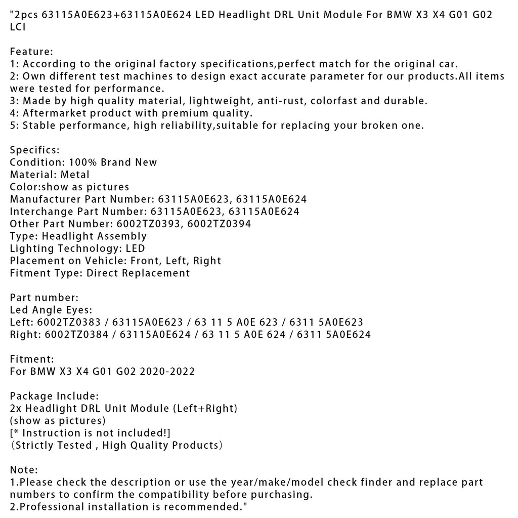 2pcs 63115A0E623+63115A0E624 LED Headlight DRL Unit Module Fit For BMW X3 X4 G01 G02 LCI